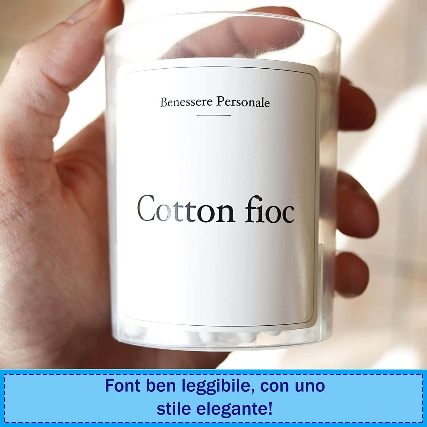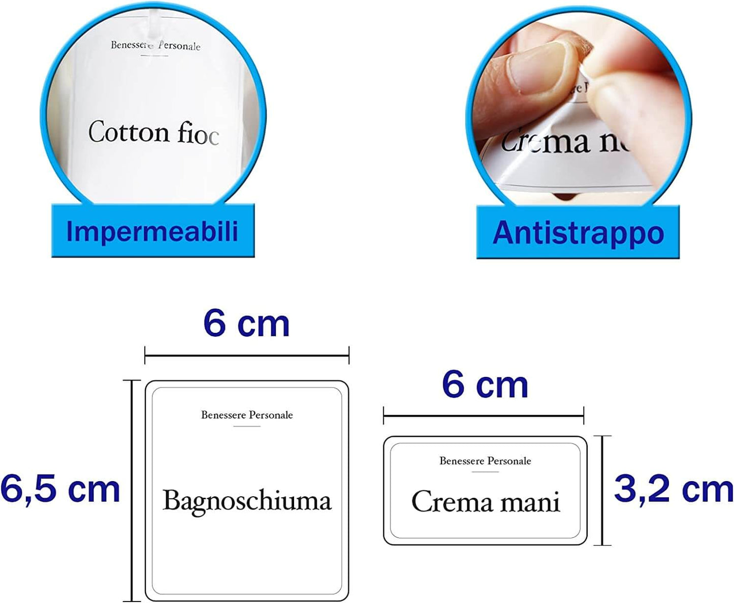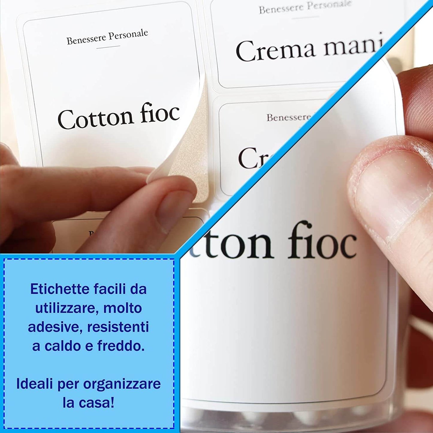 Con un pacchetto che include 38 etichette, potrai ricoprire una vasta gamma di prodotti per il benessere e la cura della pelle, capelli e corpo. Le nostre etichette sono resistenti e lavabili eanche ad alte temperature.